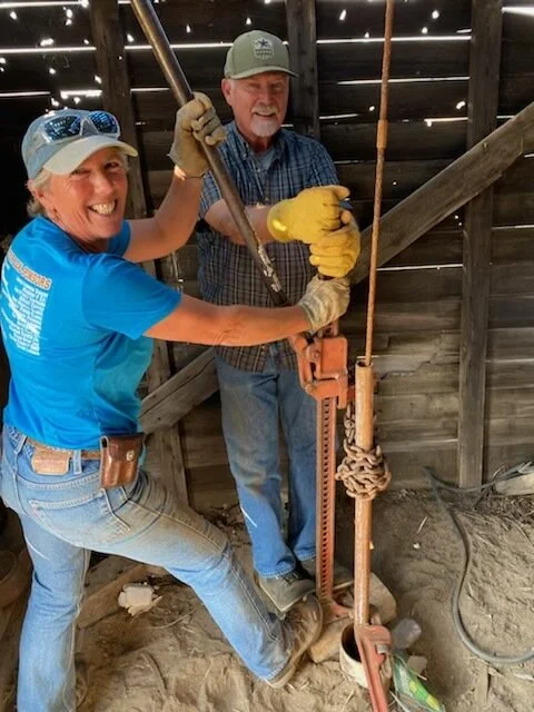 Then we pulled the broken galvanized pipe out the door of the shack, wrapped the chain around the rusty, pitted rebar that still poked above the well casing, and started jacking again.