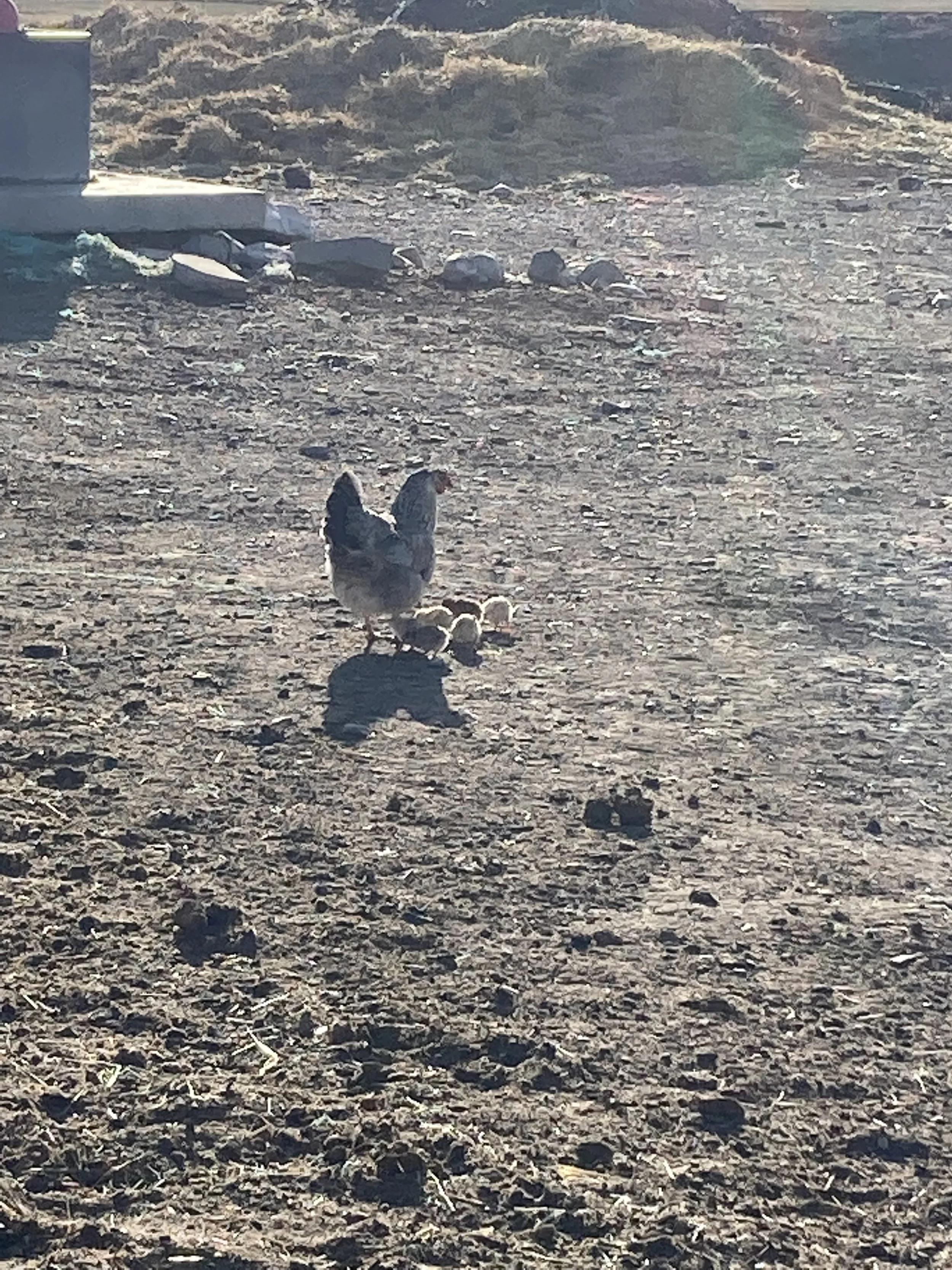 I dodged the hen and she herded her chicks to a safer spot, near the water spigot.