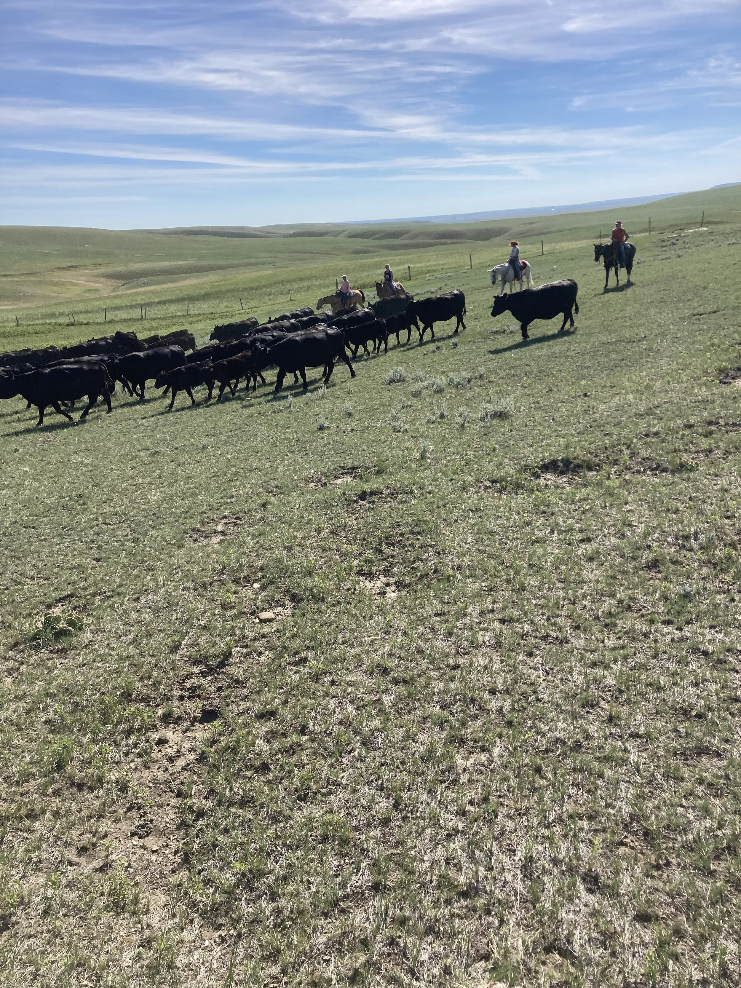 We will be moving cows with calves so we will invoke some artistry to keep the herd bunched together yet moving slowly enough so the calves know where their mamas are.