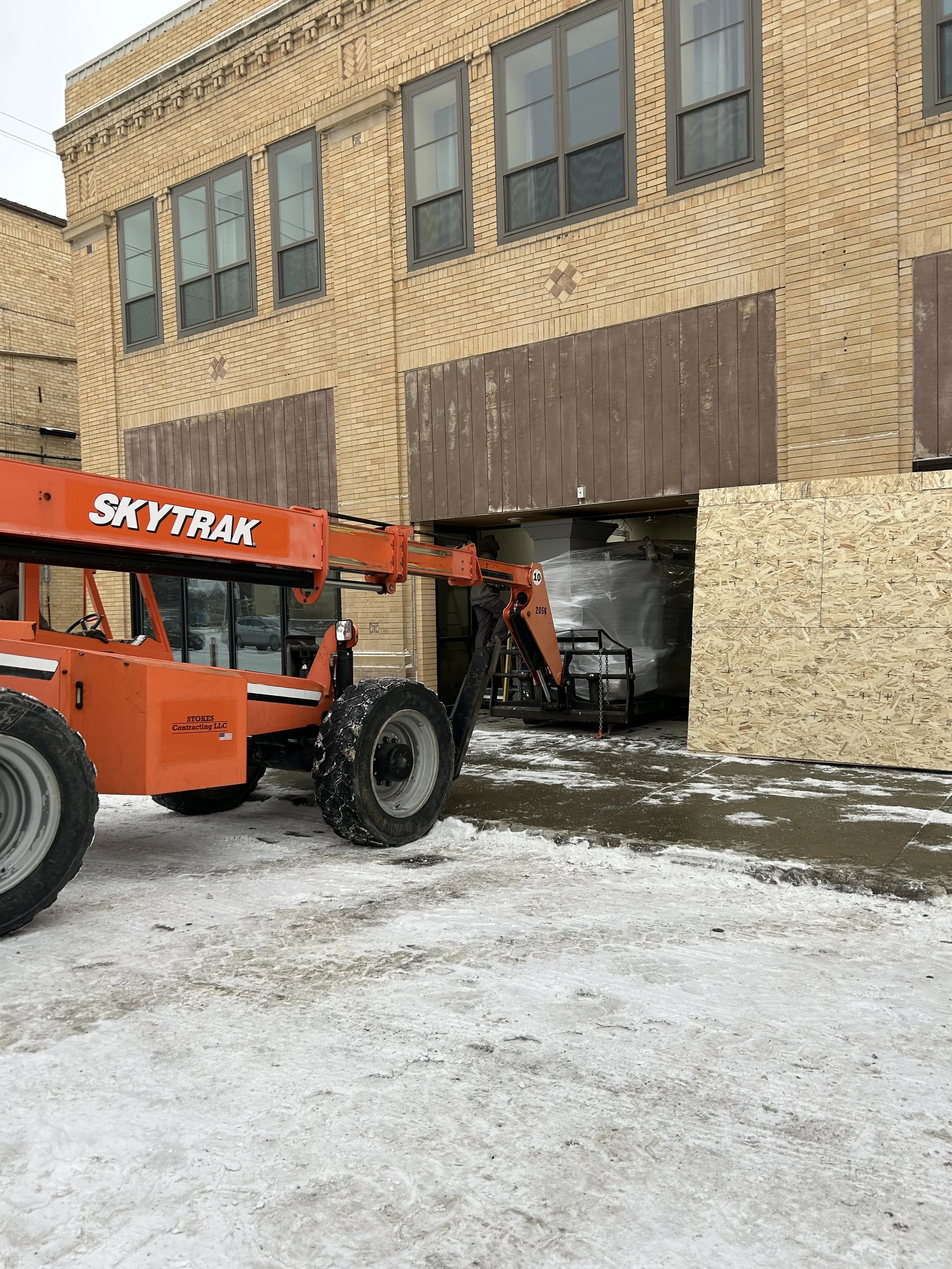 By Friday at 5:30 a.m., I was at the building, anxious about fitting an 8700-pound, 97-inch piece and a 3600-pound, 128-inch piece of equipment through a 98-inch tall door.
